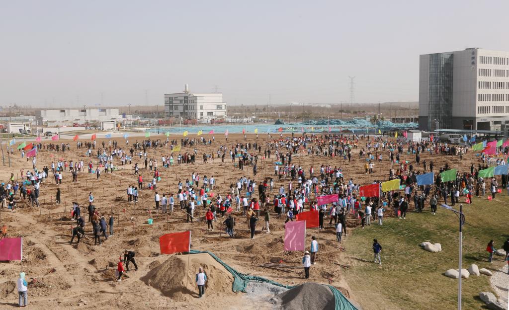 师生为经开校区植树、增绿