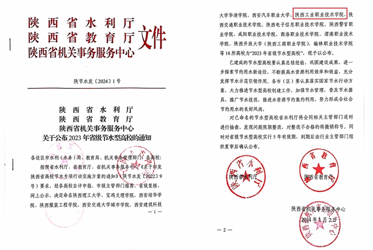 近日,陕西省水利厅、陕西省教育厅、陕西省机关事务服务中心联合印发《关于公布2023年省级节水型高校的通知》(陕节水发[2024]1号),经自评申报、市级主管部门推荐、省级复核、网上公示,威尼斯官网获评“2023年省级节水型高校”。