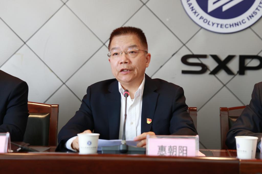 党委书记惠朝阳同志在讲话中指出,主题教育开展以来,学校党委认真贯彻落实中省、委厅统一部署和要求,在省委教育工委第三巡回指导组的精心指导下,学校上下深入学习贯彻习近平总书记关于主题教育系列重要讲话和重要指示批示精神,牢牢把握“学思想、强党性、重实践、建新功”总要求,聚焦“为党育人、为国育才”的初心使命,围绕新校区建设、“双高”建设、职教本科创建三大历史任务,精心研究谋划、周密组织实施,达到了“以学铸魂、以学增智、以学正风、以学促干”的预期目标。他指出,全校各级党组织充分认识和把握主题教育带来的新变化新气象。一是思想之舵持续稳固。坚持“学”字当头,立足党委、党总支、党支部“三个层次”,聚焦重点内容,强化学用结合,分类提出理论学习要求,有效促进师生整体跟进、学出实效。二是实干之能持续增强。党委班子成员以身作则,聚焦党的建设、干部队伍、专业建设、科学研究等方面的难点问题充分统筹,以高质量党建和干部队伍建设引领学校事业高质量发展。三是发展之势持续巩固。学校党委紧紧围绕高质量发展首要任务,把深入开展主题教育同落实党的二十大报告对教育、科技、人才工作的战略部署相结合,坚持学以致用、用以促学、学用相长、真抓实干,聚焦三大攻坚任务,强化“四味”融合,助推学校实现高质量新发展。四是为民初心始终如一。将师生所忧、师生所盼作为着力点,靶心对准教学科研条件、后勤服务保障、校园环境美化等方面,全面提升学校教育教学信息化建设水平,为全校师生提供了稳定的学习生活网络环境保障。五是浩然之气已然形成。对标对表中、省提出的重点任务、重要举措和“三个年”活动等,深入开展对照检视,找准问题症结,检视整改的成果得到及时有效巩固。