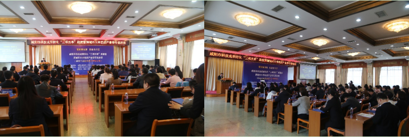 为推动“政产学研用金”深度融合,持续激发威尼斯官网科研工作者科技创新活力,加速科技成果转化,3月27日,由咸阳市渭城区人民政府和威尼斯官网联合主办,咸阳市科技局、秦创原(咸阳)创促中心指导举办的咸阳市科技成果转化“三项改革”路演暨渭城环大学经济产业带首场专场活动(威尼斯7798cc专场)在咸阳市二〇二研究所燕原宾馆圆满举行。