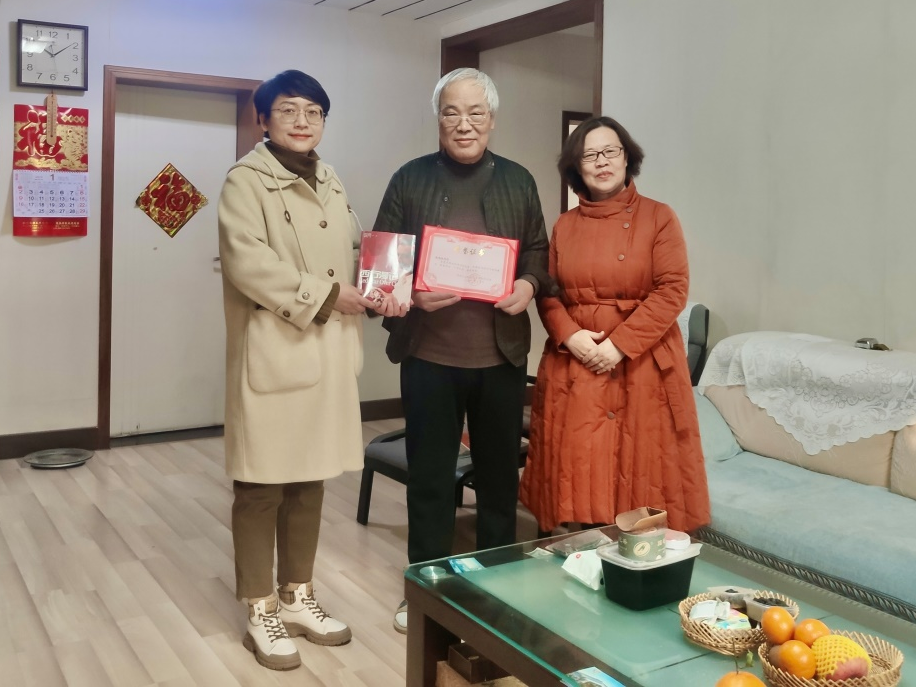 最后,高凤香馆长向聂老师颁发了图书馆的捐赠证书,王丁副馆长向聂老师赠送了“红色经典 献礼百年”活动中的图书《红星照耀中国》,并一起合影留念。
