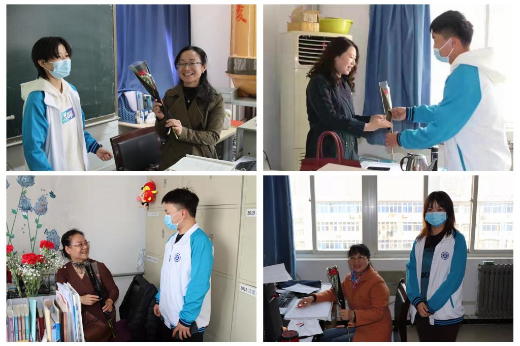 3月8日上午,同学们就开始悄无声息的为女老师们准备小惊喜,写贺卡送祝福。电气学子手捧鲜花,来到教室、办公室,实训中心等教学场所,为每一位女老师送上他们的心意,表达了对老师们的节日祝福。老师们备受感动,对学生送来的祝福表示感谢。