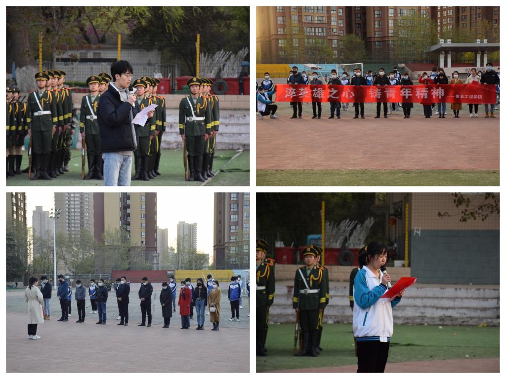 为纪念革命先烈,追溯红色历史,弘扬民族精神。3月28日清晨,信息工程学院在学校操场组织开展了“国旗下的成长—淬英雄之心,铸青年精神”主题教育活动。校团委书记赵双军、信息工程学院党总支副书记郭新玲、学工办主任穆昌、学工办全体辅导员及学生干部代表近50人参加了本次活动。