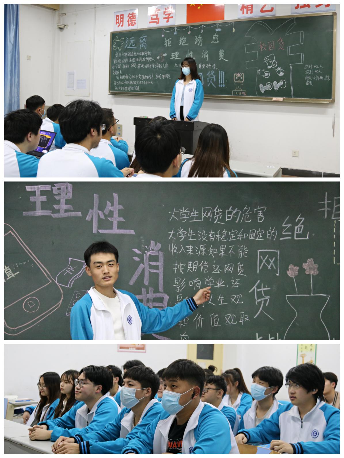 本次主题班会以观看教育视频和班级内组织讨论的形式展开。通过相关视频资料向学生展示不理智消费的后果,最后由各班班委带领各班学生共同探讨。在讨论交流中,宣传国家资助政策,引导同学们要正确使用各类奖助学金,帮助同学们消费中的攀比、虚荣、盲目心理,走出消费的误区,号召同学们要树立理性消费观念,避免掉入消费主义的陷阱,远离各种校园贷款。