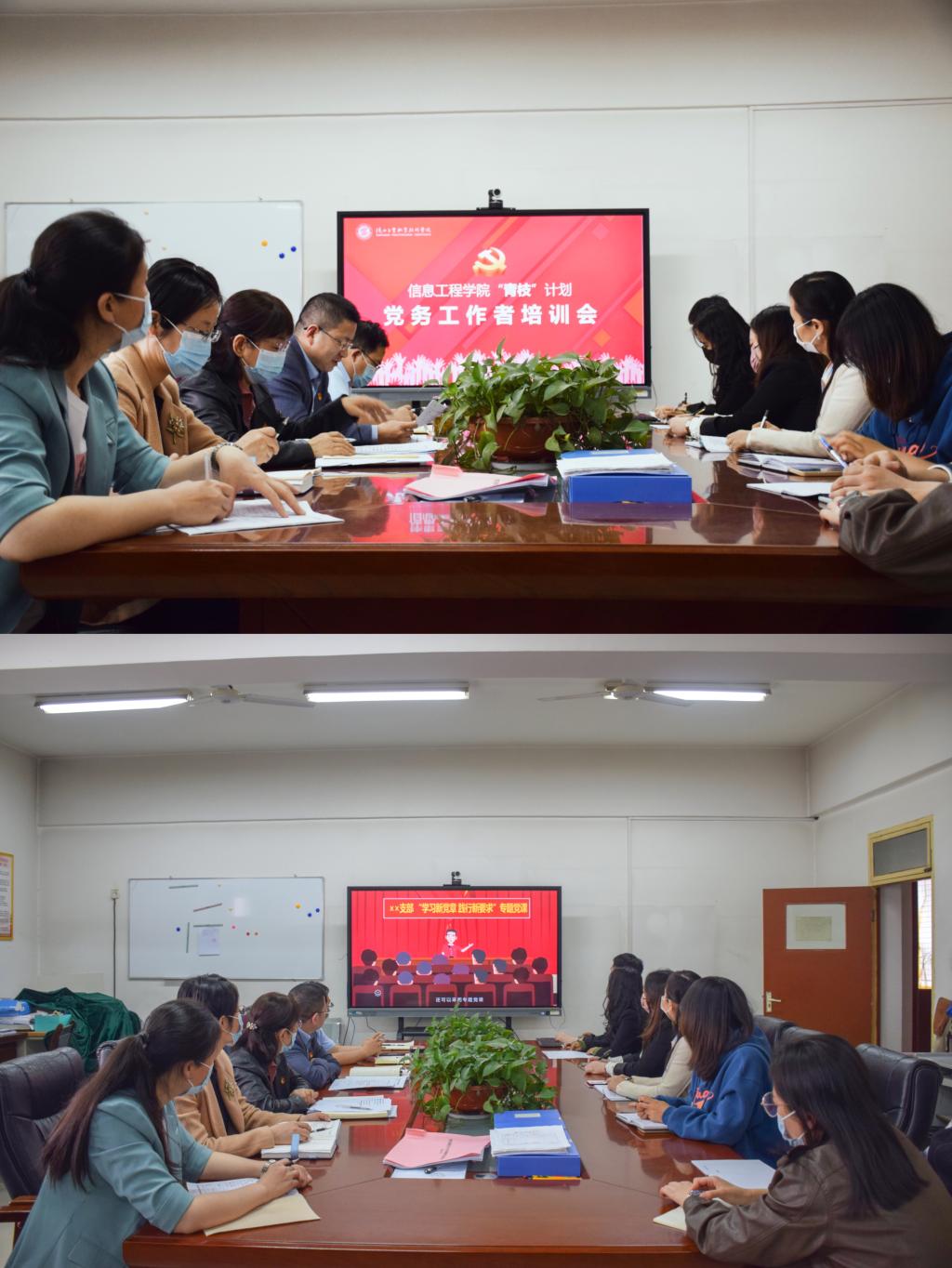 为将信息学院党总支“青枝”计划落地,打造一支高素质专业化的党务工作者队伍,提升基层党建工作活力,4月12日下午,学院党总支在崇文楼806室召开党务工作者培训会,持续推进“青枝”计划。党总支书记闫军、副书记郭新玲、各党支部书记、总支和支部委员等党务工作者参加了培训会,培训会由郭新玲同志主持。