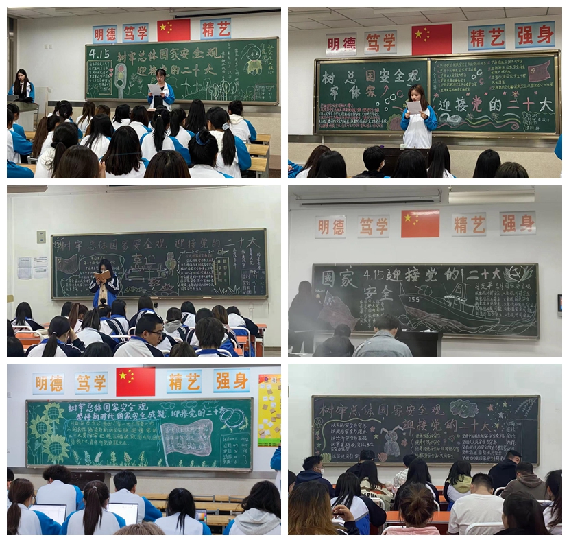 本次主题团日活动以班级为单位,绘制了宣传板报,营造热烈的学习氛围。各团支部组织班级学生观看了《2022年全民国家安全教育日高校公开课》《“习近平法治思想”普法宣传》等国家安全日宣传教育短片。各班班委向学生们普及了国家安全相关理论知识,之后学生们就国家安全话题展开话题讨论,围绕“作为一名共青团员需要为国家安全做些什么?”等问题各抒己见、表明态度与立场。