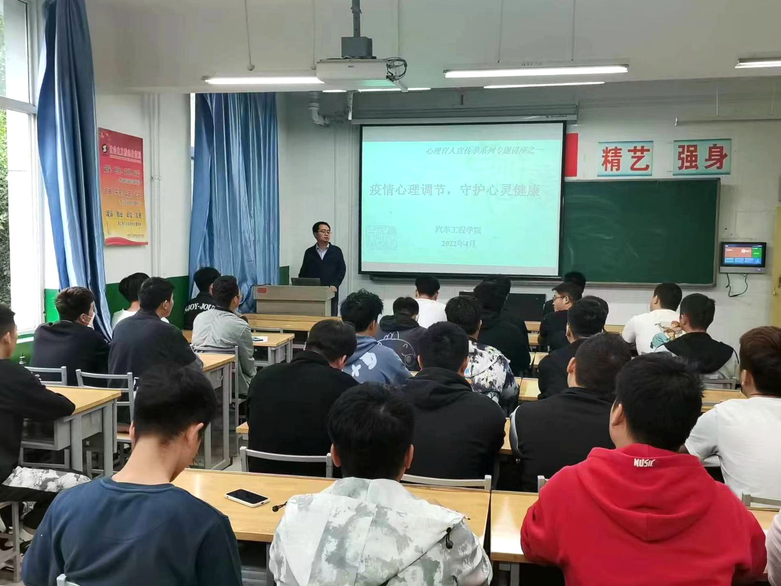为帮助青年学生提高心理调节能力,宣传普及心理保健知识,深入开展心理健康教育,4月25日下午,汽车学院举办“疫情心理调节,守护心灵健康”心理健康讲座,由学院心理专干李友治老师主讲,各班级心理委员、班长等30余人参加。