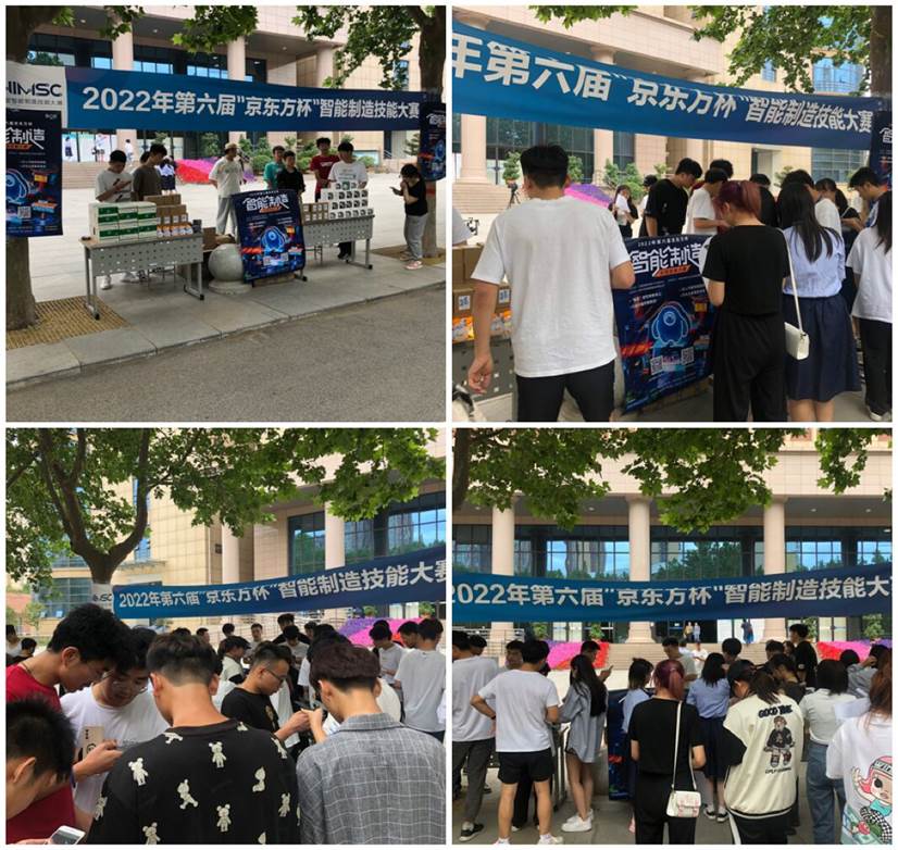 宣传活动中,“京东方订单班”学生耐心向咨询的同学介绍此次大赛的报名方式、流程、赛制、奖项设置等,还为现场报名的学生送上小礼品。现场气氛热烈,同学们报名积极性很高,纷纷表示会认真参加比赛。本次比赛面向智能制造相关专业(机械、机电、电子、电气、自动化、信息、计算机、测控、物联网、工业机器人等)的在校学生。