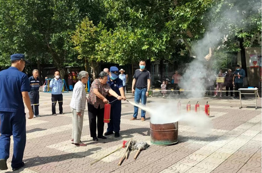 本次消防演练分讲解示范、现场示范、模拟火情、组织灭火等多个环节。消防救援大队工作人员向社区居民们详细介绍了灭火器的使用方法、人员安全疏导以及在发生火灾事故后的基本扑救方法、自防自救措施等消防安全知识,并发放家庭消防安全知识宣传单,现场示范并指导大家学会正确使用灭火器和灭火的注意事项。