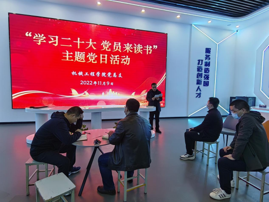 为了深入学习贯彻党的二十大精神,教育引领广大教师党员做好老师和大先生,用习近平新时代中国特色社会主义思想铸魂育人,11月9日下午,机械工程学院党总支于机加工实训中心展厅开展了“学习二十大 党员来读书”主题党日活动。活动由机械工程学院党总支书记苏宏志主持,学院全体教师党员参与了学习讨论。