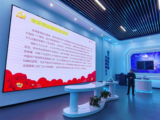 为了更好的学习宣传党的二十大精神,切实增强党组织和党员尊崇党章的政治自觉,11月16日机械工程学院全体教职工党员齐聚先进制造技术工程中心数字化展厅,总支书记苏宏志为全体党员上了一堂题为《学习新党章 贯彻二十大》的专题党课。