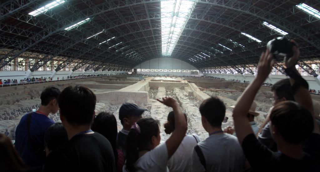下午,研习营一行又驱车前往被誉为“世界第八大奇迹”的秦始皇兵马俑博物馆,尽情领略中华文化的风采。 随着工作人员的讲解,他们先后参观了兵马俑一号、二号和三号俑坑及铜车马陈列展。当看到栩栩如生、场面壮观的兵马俑阵时,大家深深为中华民族数千年的历史文化所倾倒,被兵马俑的恢弘气势所震撼。