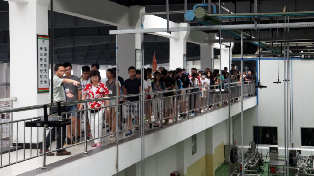8月8日,第七届台湾大学生全体师生自壶口出发,赶赴铜川,赴铜川旺旺食品有限公司参观访问。大家先后参观了铜川旺旺的展览厅、检测留样室及二期牛奶生产线,听取了企业负责人关于集团基本情况和铜川旺旺发展规划的介绍,并与企业员工进行了深入交流。台湾旺旺集团于2002年在铜川新区投资设厂,经过四期建设,现主要生产米果类、乳品类产品,年产值3.5亿元。
