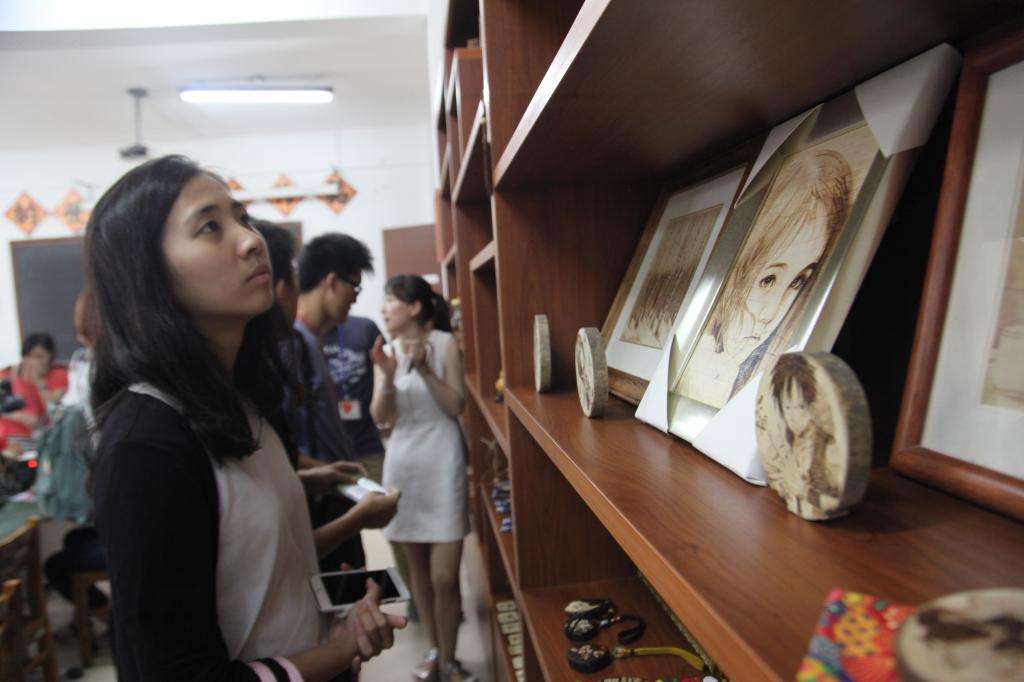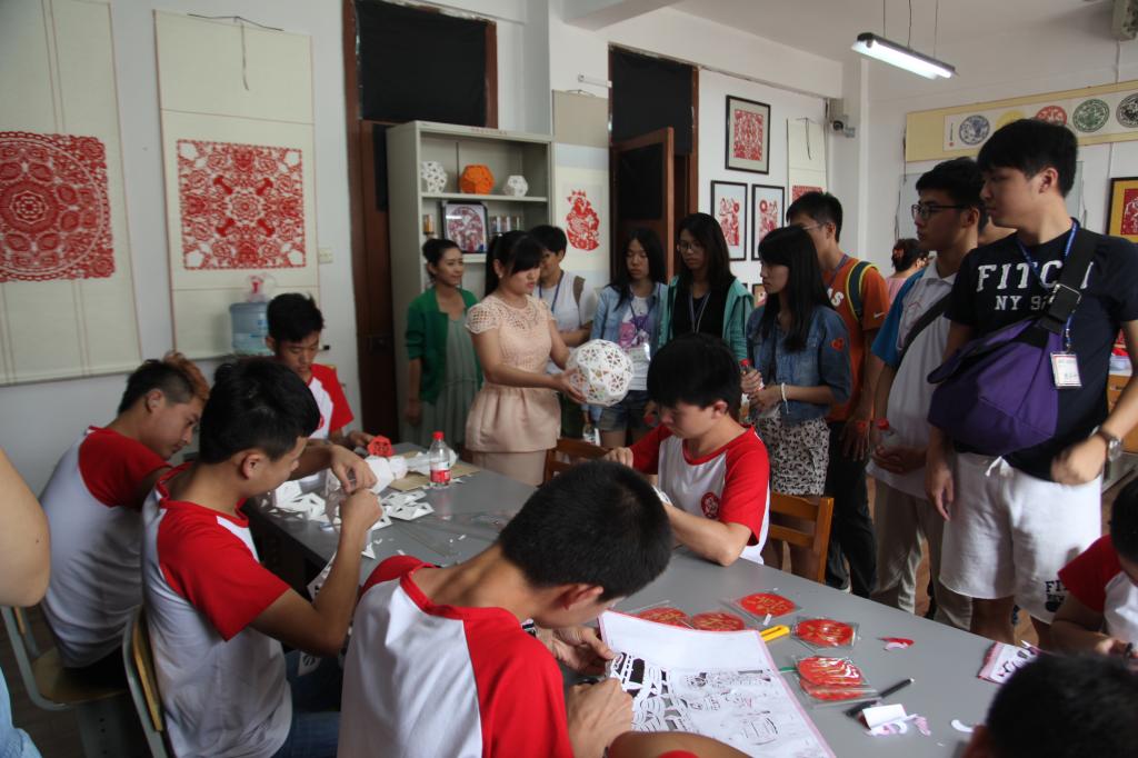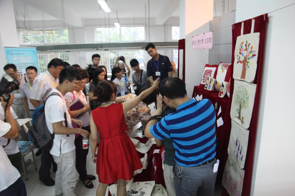 研习营一行受到了陕西省城市经济学校师生的热烈欢迎,学校特殊的同学们为远道而来的台湾同胞表演精心安排的舞蹈、歌曲、朗诵等节目,深深的感动了研习营全体营员。随后研习营一行参观了学校的手工艺、陶艺、服装等实习实训室,观摩了同学们的实习、实训作品,与正在实习的学生亲切交流,赞叹他们心灵手巧的工艺,赞赏他们踏实稳重的学习态度,由衷的佩服他们身残志坚的精神。