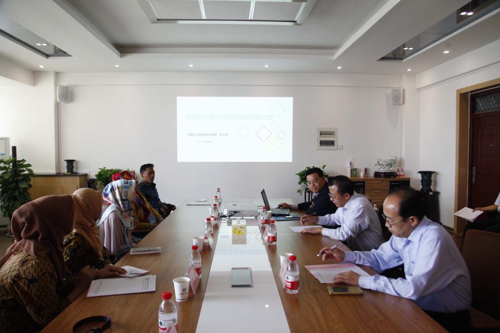 在培训环节,刘永亮以“中国现代职业教育发展之路”为题,从我国现代职业教育发展历程、取得的主要成就和下一步创新发展思路等方面,向印尼职业院校管理干部做了专题讲座。