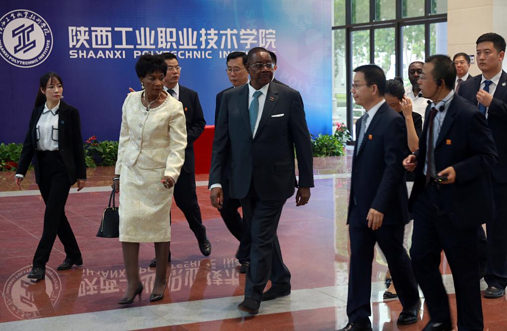 总统夫人格特鲁德·穆塔里卡女士、工业贸易与旅游部部长亨利·穆萨、财政与经济发展部部长古多尔·贡德伟、自然资源能源与矿产部部长阿格雷·马西、马拉维驻华大使查尔斯·纳蒙德维等随行访问,陕西省人民政府副省长魏增军、陕西省外事办主任姚红娟、中国驻马拉维共和国大使刘洪洋、外交部参赞王磊等陪同考察。我院党委副书记、副院长刘永亮及学院领导班子其他成员参加活动。