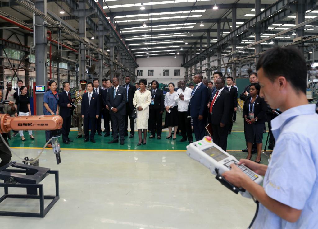 穆塔里卡总统观看我院学生机器人操作实训演示
