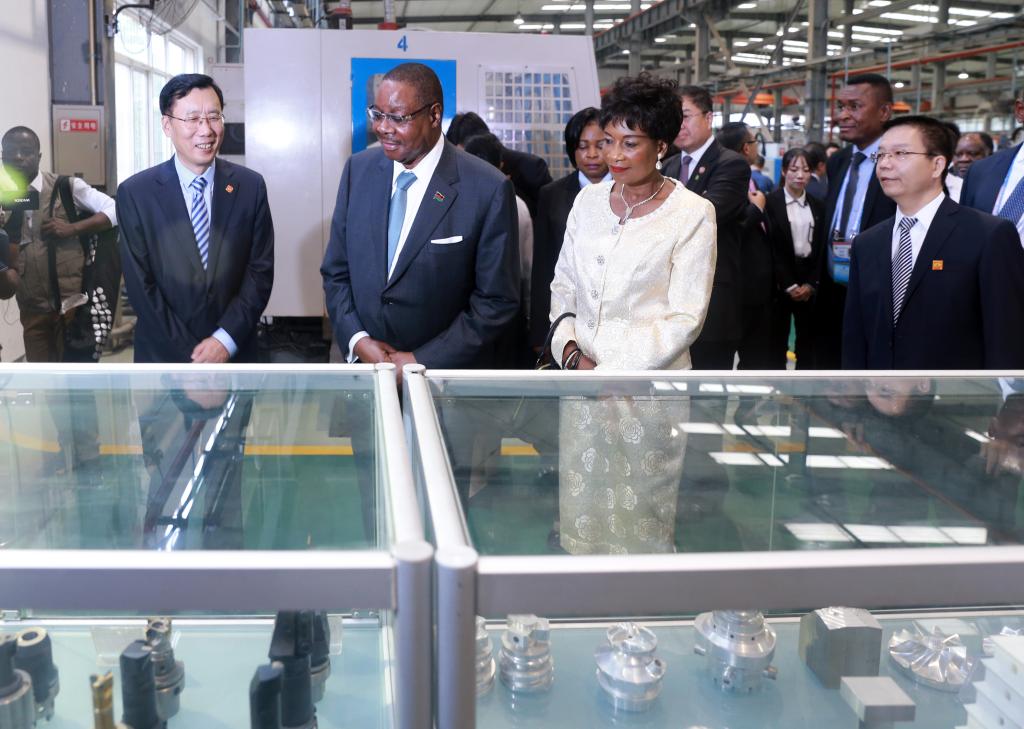 党委书记惠朝阳对阿瑟·彼得·穆塔里卡总统一行的到访表示热烈欢迎,并陪同总统阁下一行参观了我院汽车工程与服务技术训练中心、机加工技术训练中心、欧姆龙自动化技术实训中心等实训场所。每到一处,穆塔里卡总统都饶有兴致地听取讲解、观看演示,不时与现场的教师、学生进行互动,询问相关细节,并对我院的办学成就给予高度肯定。