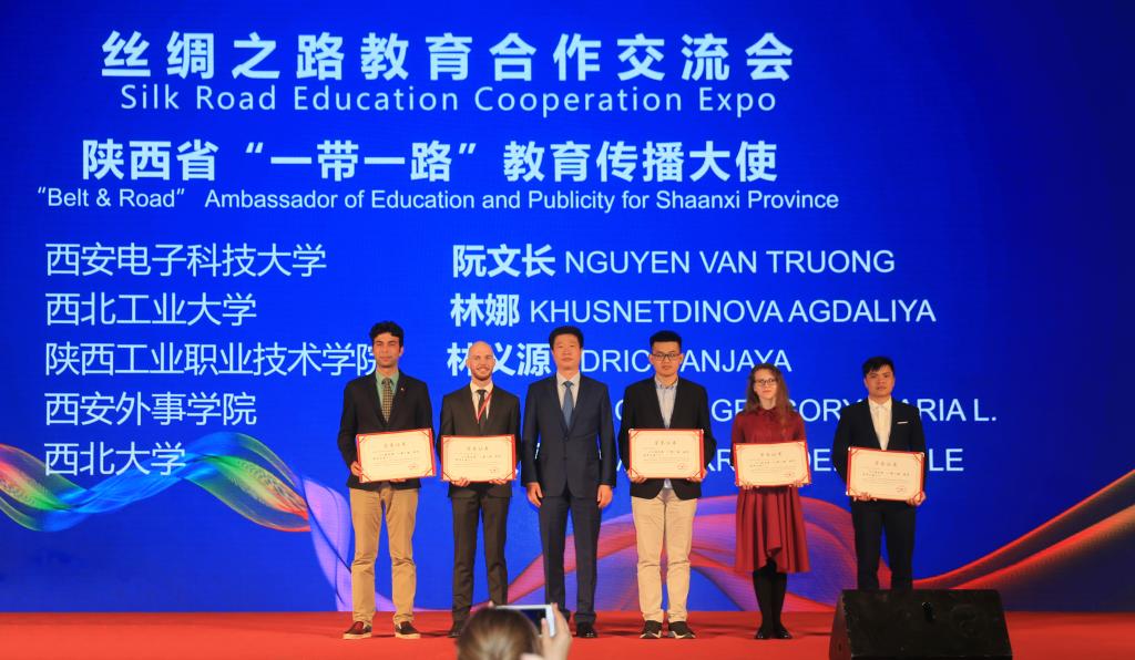 我院留学生林义源同学(右三)获“陕西省‘一带一路’传播大使”