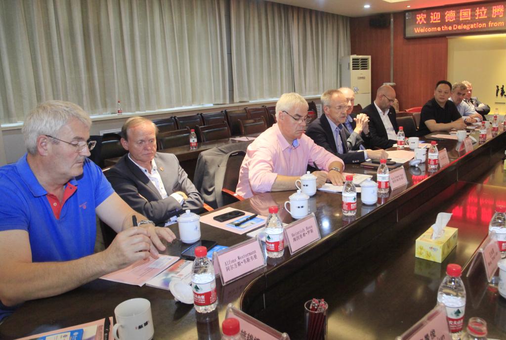 6月20日上午,德国拉腾市市长卡尔•韦伯率领该市政府及企业代表团一行9人在德国陕西商会会长李奇陪同下访问我院。代表团成员包括尼德兰根县、苏斯图姆县县长,埃姆斯企业协会负责人、康迪逊机械有限公司等5家企业负责人。党委书记惠朝阳,党委副书记、副院长刘永亮与来宾在崇文楼会议室座谈交流。