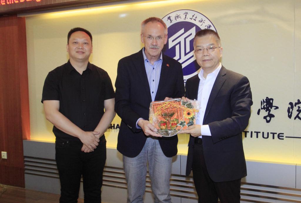 惠朝阳书记对拉腾市代表团来访表示热烈欢迎。在介绍了我院近年来的发展概况和与德国的教育交流合作情况后,他表示,在《国家职业教育改革实施方案》中,明确提出了要借鉴德国“双元制”职业教育模式,促进产教融合校企“双元”育人。建设国际一流高职院校,与国际一流企业对接是实现学院可持续发展的方向,服务地方国际一流企业是我院今后的合作重点。拉腾市与陕西交往源远流长,合作基础良好,希望能与拉腾市建立合作项目。就今后的合作方向,他提出了两点希望:一是我院重视与德国开展师生交流等教育交流合作,希望代表团能为我院与德国院校开展教育交流合作牵线搭桥,促成更多的合作项目。二是希望发挥我院优势,服务德国在华,特别是在陕企业,校企合作制定国际课程标准,开展订单式人才培养,争取打造校企人才培养基地。