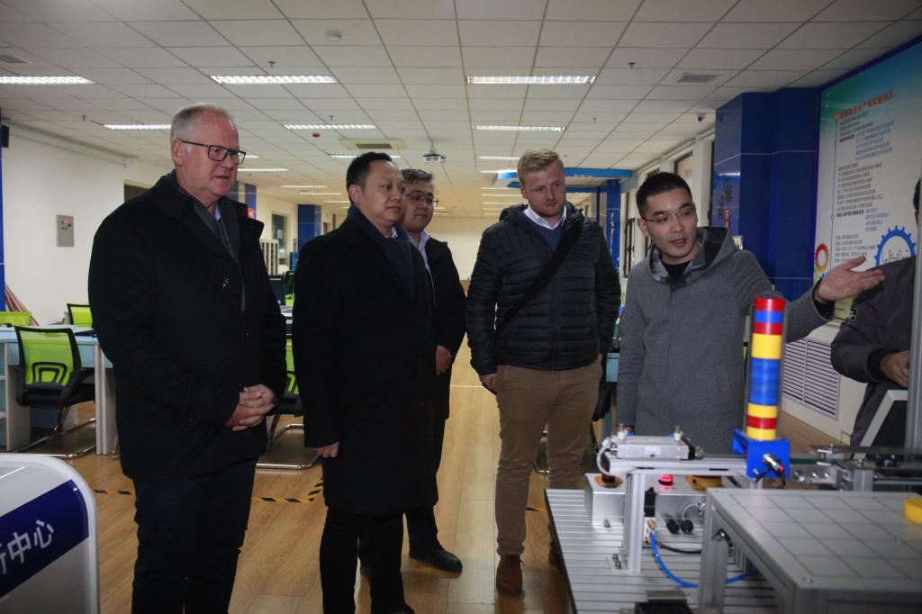 会前,田昊副书记陪同客人参观了我院智能制造创新中心、汽车实训中心、模具实训中心、机加工中心、焊接实训中心和欧姆龙实训中心。