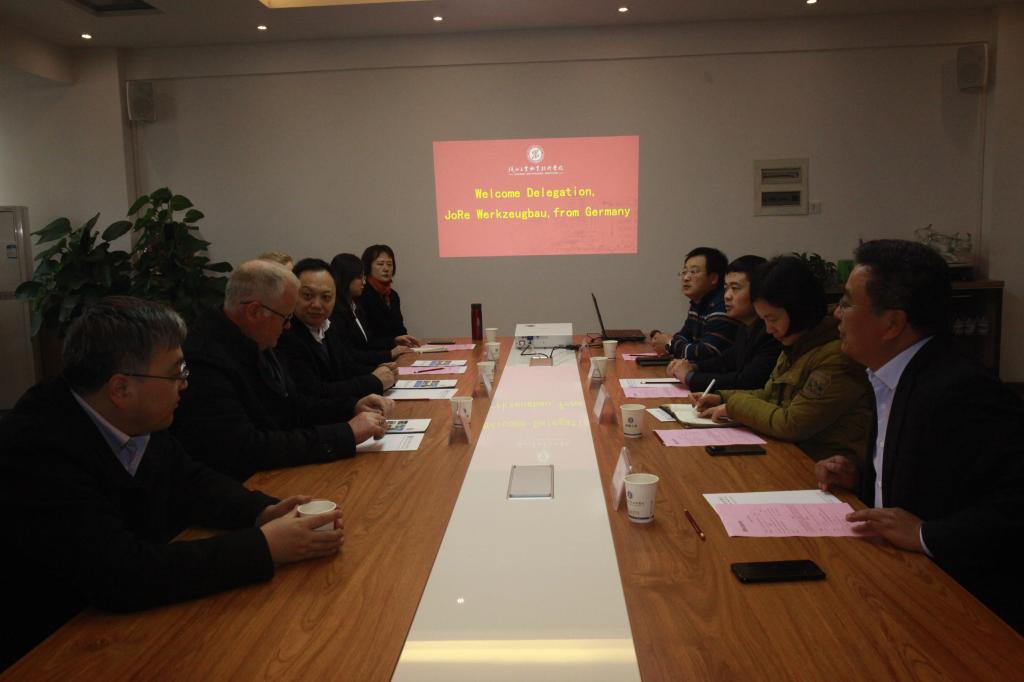弗兰克董事长对我院的热情接待表示感谢,对我院的办学条件和取得成绩表示赞赏。在介绍了JoRe Werkzeugbau公司的情况后,他表示,职业教育是国家经济发展的关键,德国二元制职业教育是保证德国工业领先世界的重要因素。目前,中国对职业教育愈加重视,JoRe Werkzeugbau公司愿意并希望能够与我院在技术技能人才培养方面建立合作关系。