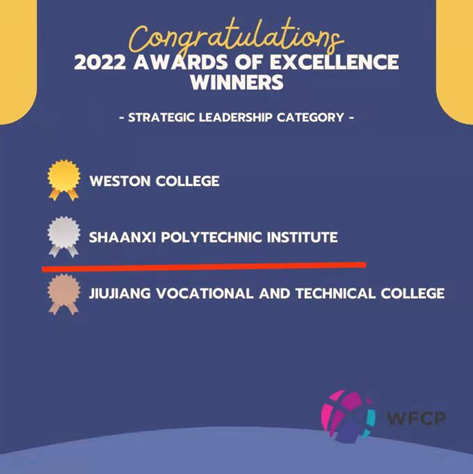 世界职业院校与技术大学联盟卓越奖每两年评选一次。2022年卓越奖设为组织奖和个人奖,其中:组织奖分为“应用研究与创新奖”“可持续发展奖”“网络和数据安全奖”“建筑奖”“全球公民奖”“教师职业发展奖”“战略领导力奖”“土著教育奖”,每个奖项分为金、银、铜奖。个人奖分为“优秀学生成就奖”“优秀教育工作者奖”“多元与包容的领导者奖”。全球共有20余个国家100多所职业院校和个人角逐本年度卓越奖。在“战略领导力”卓越奖项上,我院凭借在引领职业教育改革发展方面的卓越工作成效摘得银奖。