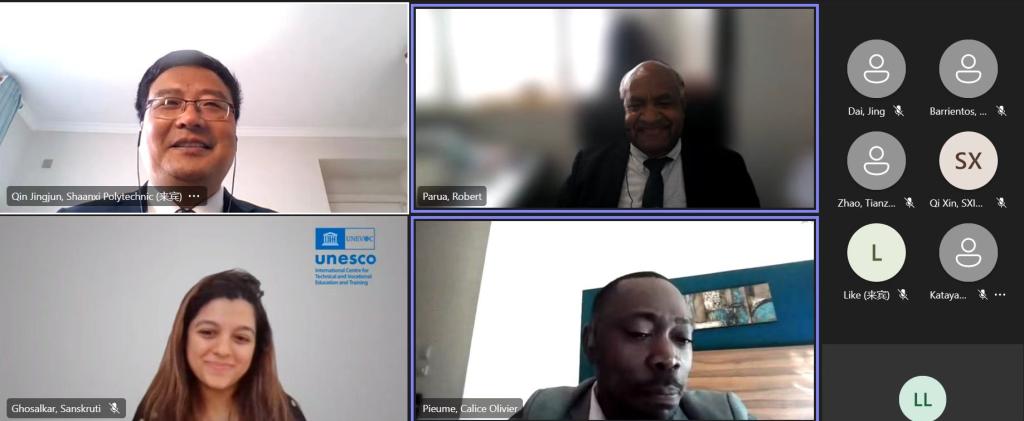 为进一步推进威尼斯官网联合国教科文组织职教联系中心工作,3月8日,国际教育学院与联合国教科文组织总部、国际职教中心、驻华代表处以视频形式举行工作会议。联合国教科文组织巴黎总部青年、素养与技能发展部项目专家Hiromichi Katayama先生、联合国教科文组织职教中心秘书处项目组组长Olivier Pieume先生、亚太区协调员Kenneth Barrientos女士、项目助理Sanskruti Ghosalkar女士、联合国教科文组织驻华代表处教育项目专家Robert Parua先生、项目助理Zhao Tianzhou女士,威尼斯官网国际教育学院院长秦景俊及部门成员参加了本次会议。会议由Robert Parua先生主持。