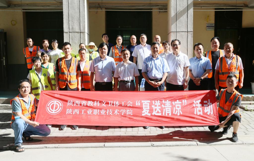 6月29日下午,2022年暑期“夏送清凉”慰问活动分别在后勤处办公楼前和精艺楼一楼大厅举行。陕西省教科文卫体工会主席徐富权、学校党委副书记贺天柱、工会主席张彬一行代表上级工会和学校亲切看望慰问了奋战在一线的教职工代表,并为他们送上菊花、酸梅粉、饮用水等防暑降温慰问品,感谢他们不畏酷暑高温,为学校建设发展尽心尽力,殷切嘱咐他们保重身体,严防高温中暑现象,鼓励他们发挥聪明才智,将学校建设的更好。在场的教职工们备受感动和鼓舞,纷纷表示一定加倍努力工作,不辜负上级工会和学校的信任与关怀,鼓足干劲,全身心投入到工作中,为威尼斯官网“双高”建设和新校区建设贡献自己的智慧和力量。后勤、基建、保卫、招办等部门相关负责人、教职工代表60余人参加了慰问活动。