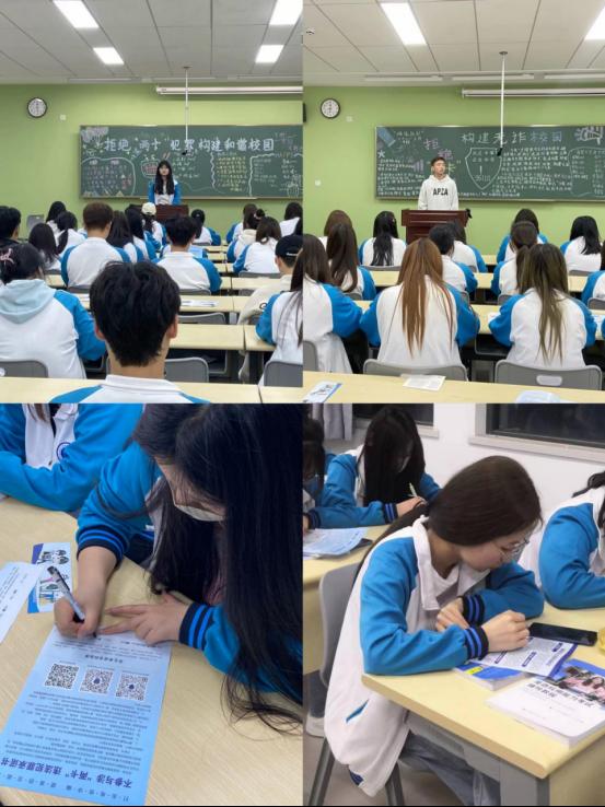 在班会现场,各班团支书进行专题报告宣讲。通过主题板报、播放视频、签订不参与涉“两卡”违法犯罪承诺书、指导学生下载使用国家反诈APP等方式,并结合近期校园发生的真实案例和校园典型诈骗案例,以案释法,以法施教,深入简出的向同学们阐述了电信网络诈骗的新趋势、新手段,同时强调了微信、支付宝等账号出租,以及贩卖“两卡”的法律后果,提醒他们时刻保护好个人信息,提高自身防电信诈骗、防洗钱意识,切勿成为电信网络诈骗犯罪的帮凶,不为蝇头小利落入犯罪分子的诈骗陷阱。